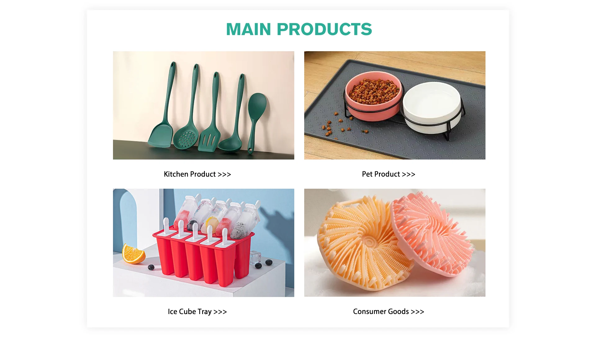 Sản Phẩm chính: Silicone Cube khay, Silicone mat, Silicone tắm bàn chải, Silicone vật nuôi bát, Silicone bé pacificer